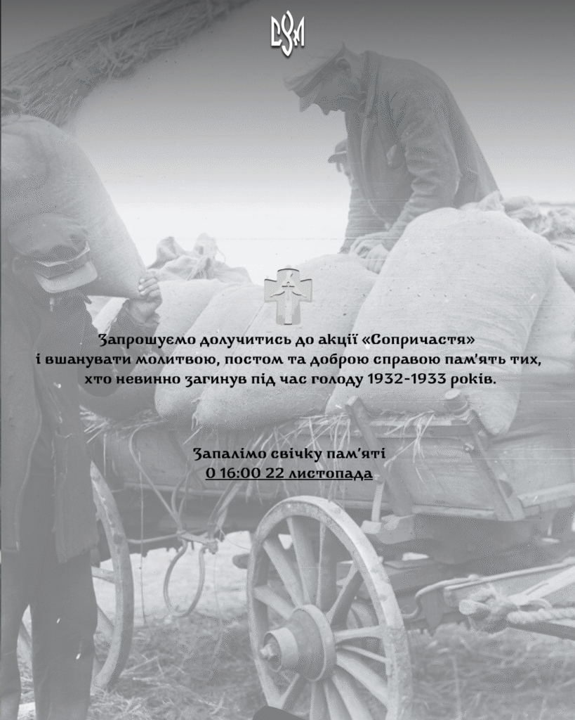 📎 Запрошуємо долучитись до акції «Сопричастя» і вшанувати молитвою, постом та доброю справою пам’ять тих, хто невинно загинув під час голоду 1932-1933 років.